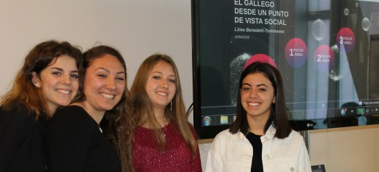 Matilde, Irene, Alessandra e Mia, foron o grupo que traballou arredor da área social. A Mesa pola Normalización ou a Asociación Alexandre Bóveda estaban entre os contidos abordados por este grupo de mozas.