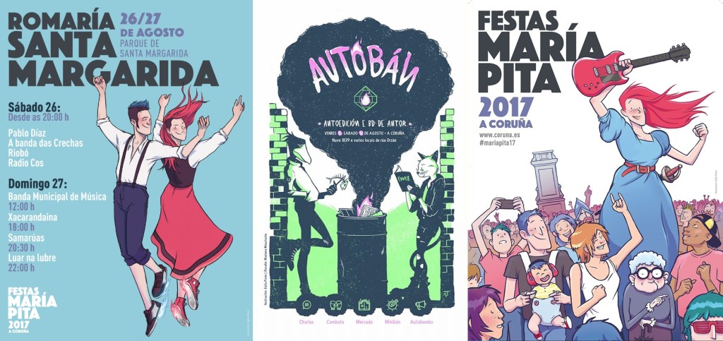 “O meu primeiro encargo importante e público foi o máis memorable, tratábase da campaña das Festas de María Pita no 2017. Eu estaba rematando o ciclo de ilustración cando me chamou o Concelleiro de Cultura e foi unha montaña rusa de emocións para min. Tiña quince días para tres carteis e paséinos chorando de pánico, do estrés púxenme enferma, e acabei facendo os traballos tres días antes da entrega, con febre e querendo desaparecer do mundo. Aprendín moito daquel traballo, especialmente a relativizar as cousas“.