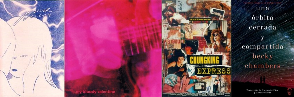 PETISCOS PARA RECOMENDAR UN FILME: Chungking Express (Wong Kar Wai) UN LIBRO: Una órbita cerrada y compartida (Becky Chambers) UN FANZINE: Amorcito #1 (coordinado por Luis Yang) UNHA CANCIÓN: diría un disco, Loveless de My Bloody Valentine UN LUGAR: diría un videoxogo, Zelda Breath of the Wild UNHA INQUEDANZA: diría un videoxogo, Final fantasy 7 UNHA COMIDA: diría un videoxogo, Wilmot's Warehouse UN DESEXO: diría un videoxogo, Night in the Woods UN PECADO: diría un videoxogo, Minecraft