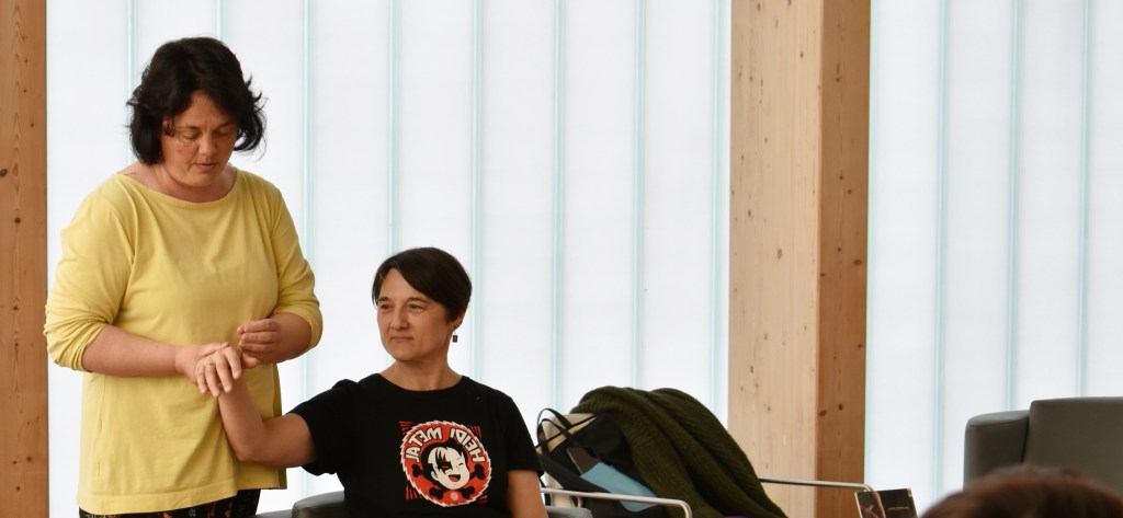 Con Vero López descubrimos na biblioteca unha das técnicas máis coñecidas da medicina chinesa, a acupuntura, e profundamos na Medicina Chinesa Integrativa como enfoque eficaz para descubrir como a mente produce patoloxías que afectan ao corpo. Tamén puxo en práctica co alumnado a reflexoloxía auricular, estimulando puntos reflexos que están interconectados con órganos e procesos corporais. Os medidores de puntos de acupuntura chamaron especialmente a atención entre o alumnado, sendo moitas as persoas sorprendidas coas desordes corporais que lles devolvía esta sinxela detección a modo de demostración.